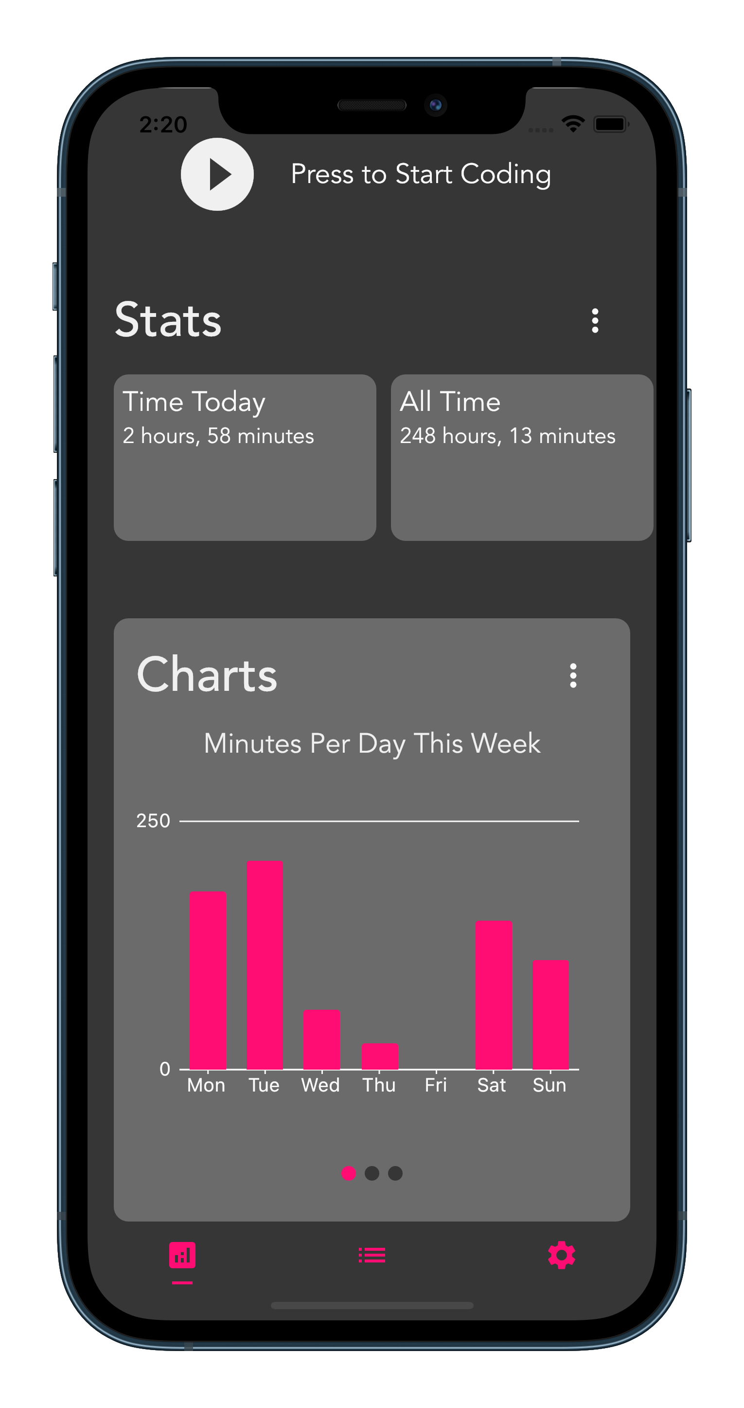 Even though recording data is as simple as it gets, we still have amazing ways to view your data: charts, stats and more